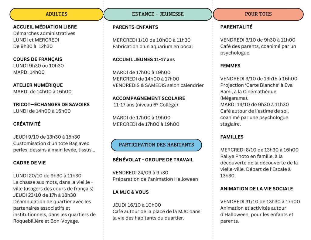 L’Escale de la MJC Agora est un lieu de vie et d’accompagnement autour des actions de médiation proposées par la MJC. Vous pourrez y trouver des activités sociales et de loisirs adaptées à tous.